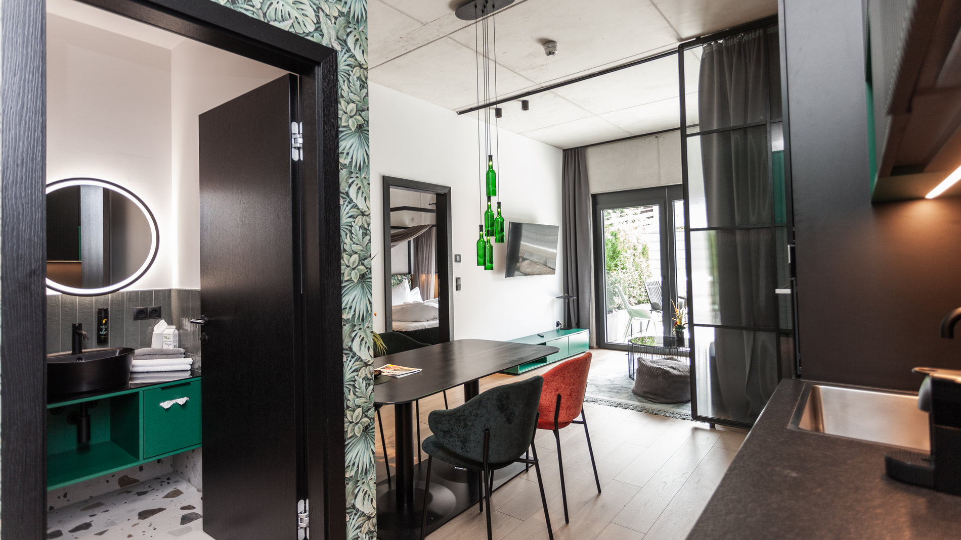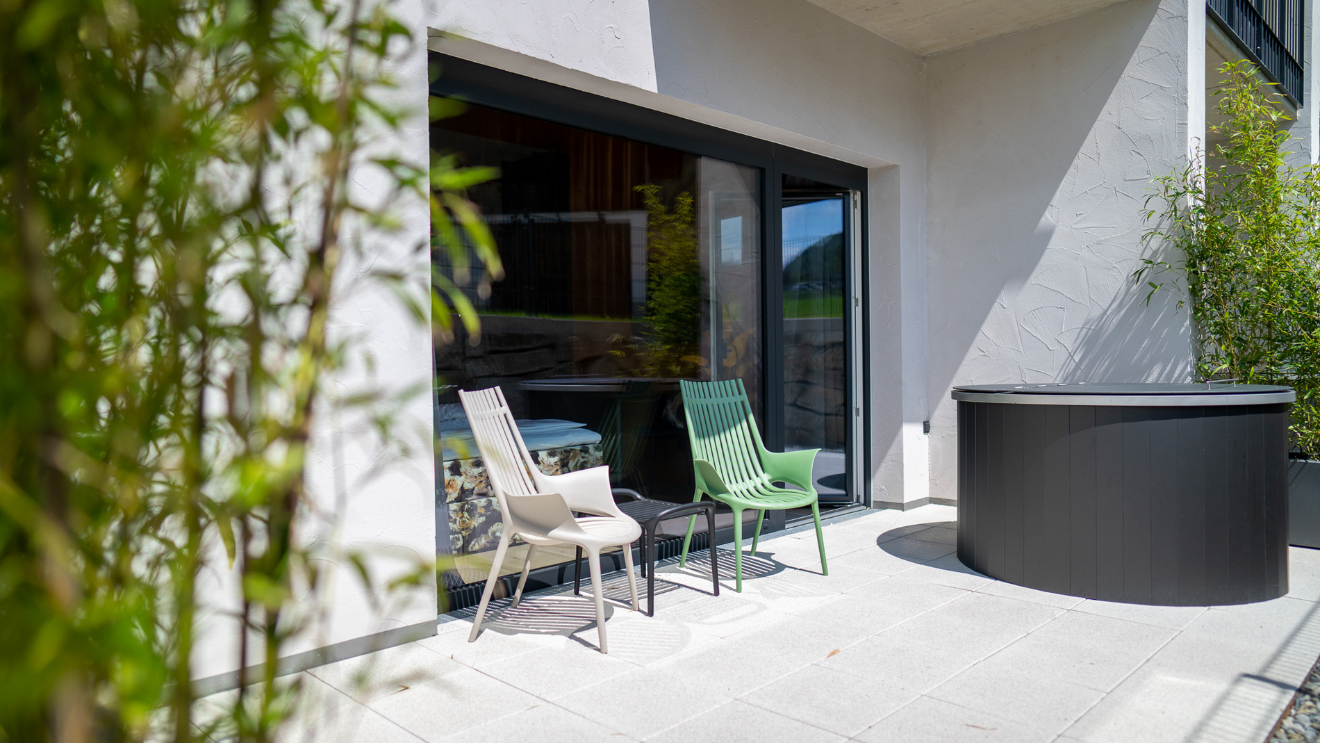 Zwei Schlafzimmer, ein Wohnbereich mit Schlafsofa und ein großzügiges Bad bieten Familien oder kleinen Gruppen jeden Komfort, den man von einer gehobenen Unterkunft erwartet. Und der private Hot Pot auf der Terrasse? Der übertrifft alle Erwartungen.