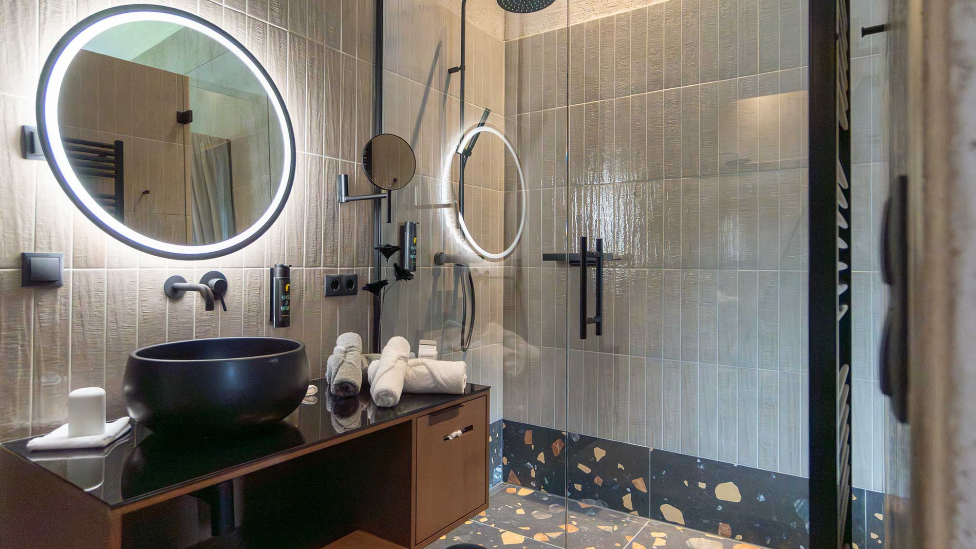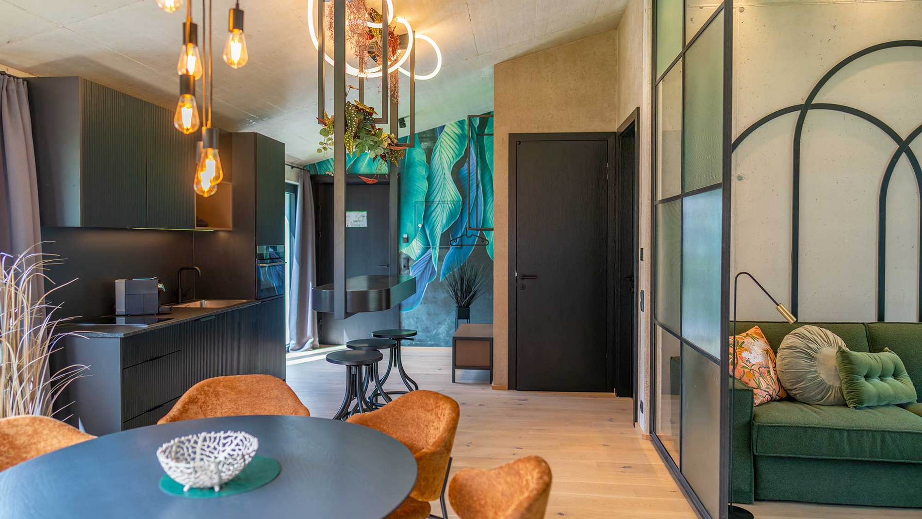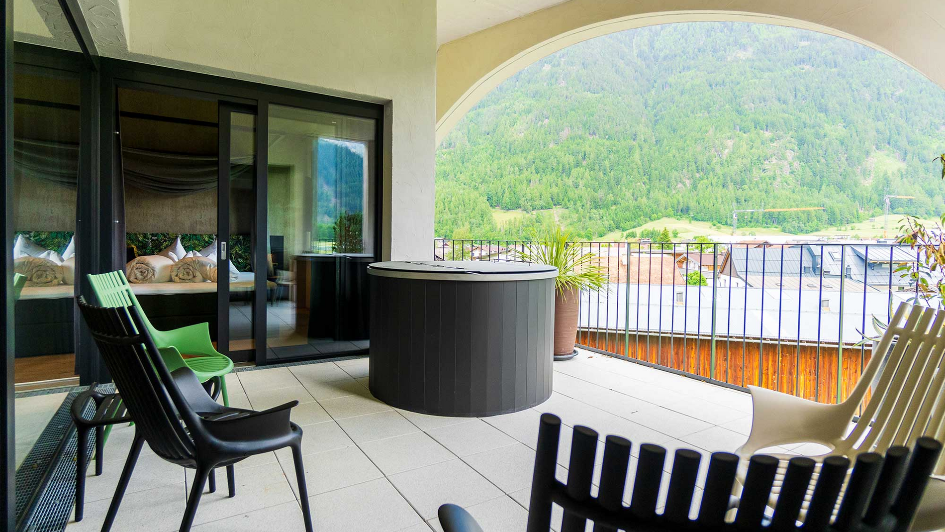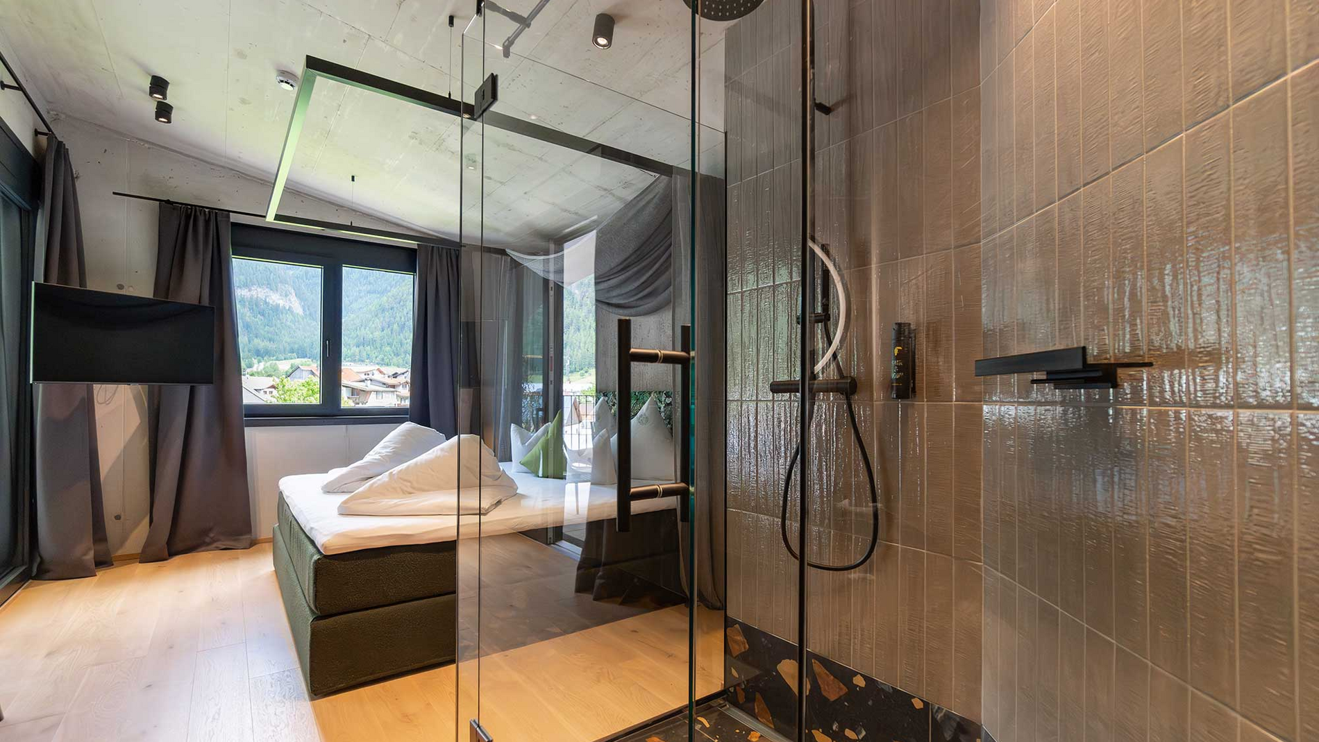 Ganz oben im 4. Stock erwartet dich unser exklusives Penthouse mit zwei Schlafzimmern, zwei Bädern und einer großzügigen Dachterrasse. Das absolute Highlight: dein privater Hot Pot mit atemberaubendem Blick auf die Dreitausender. Für bis zu sechs Personen – Luxus und Freiheit ohne Kompromisse.